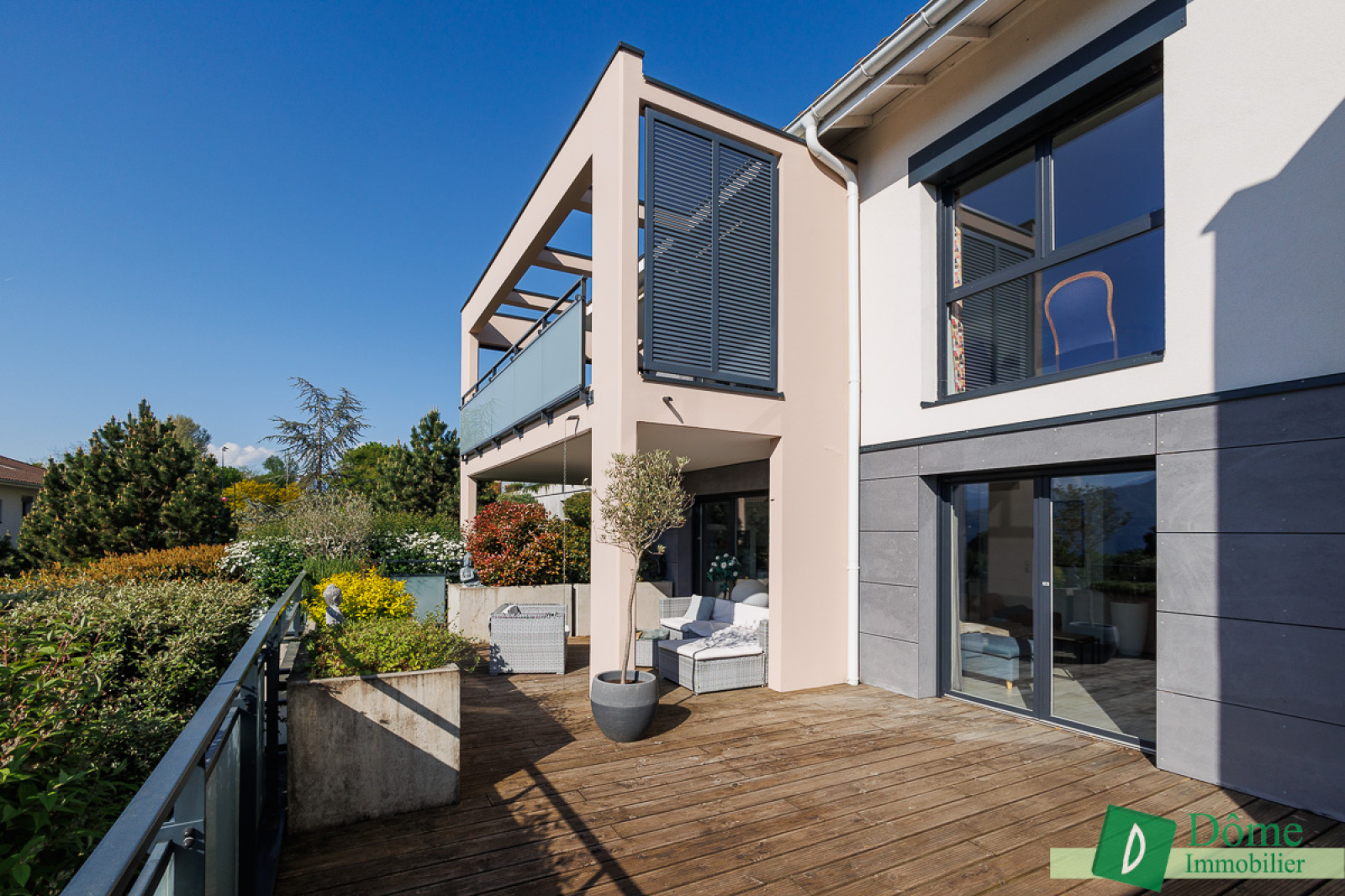 - la terrasse semi-couverte qui prolonge la pièce de vie vers un véritable salon d’extérieur